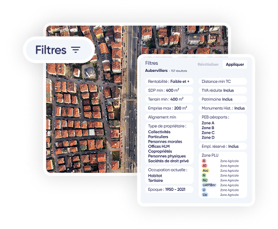 Expertisez les ensembles immobiliers et ciblez les fonciers et les actifs à fort potentiel de valorisation grâce à des recherches multicritères.